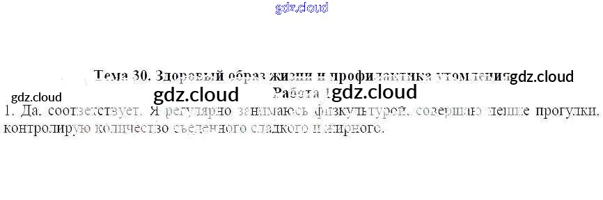 Работа 1 Ответы к теме: 30. Здоровый образ жизни и профилактика утомления по ОБЖ 6 класс Рабочая тетрадь Демидов Лицей