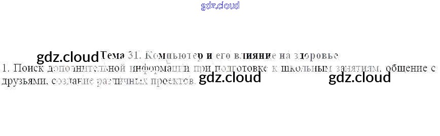 Ответы к теме: 31. Компьютер и его влияние на здоровье по ОБЖ 6 класс Рабочая тетрадь Демидов Лицей