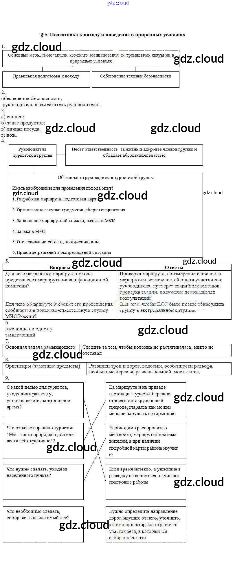 Ответы к параграфам по ОБЖ 6 класс Рабочая тетрадь Латчук Вертикаль Дрофа