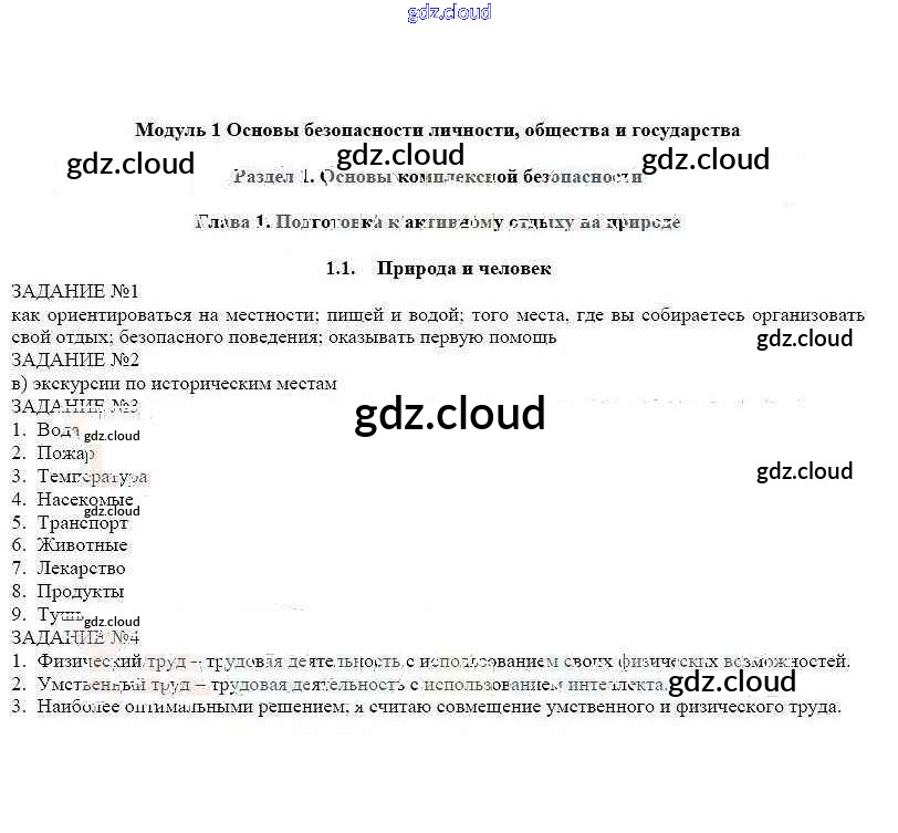 Ответ на задание 1.1 Рабочая тетрадь ОБЖ за 6 (шестой) класс Смирнов, Хренников 2016 ФГОС онлайн и без номера телефона.