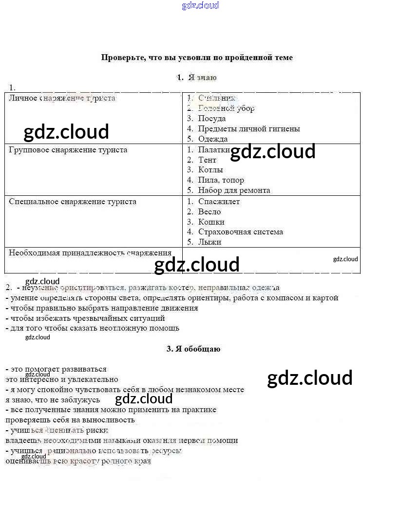 Ответ на задание Проверьте свои знания Рабочая тетрадь ОБЖ за 6 (шестой) класс Смирнов, Хренников 2016 ФГОС онлайн и без номера телефона.