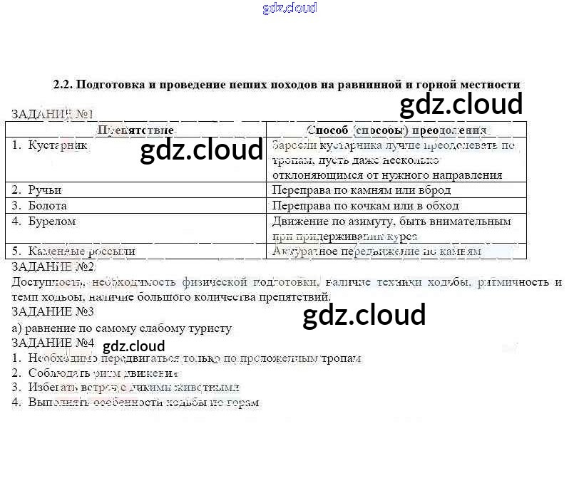 Ответ на задание 2.2 Рабочая тетрадь ОБЖ за 6 (шестой) класс Смирнов, Хренников 2016 ФГОС онлайн и без номера телефона.