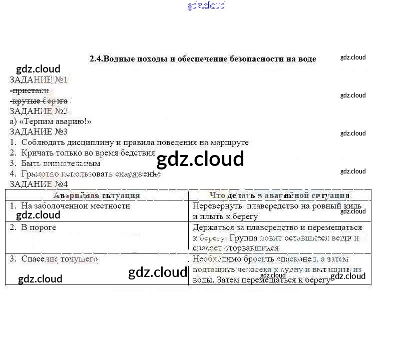 Ответ на задание 2.4 Рабочая тетрадь ОБЖ за 6 (шестой) класс Смирнов, Хренников 2016 ФГОС онлайн и без номера телефона.