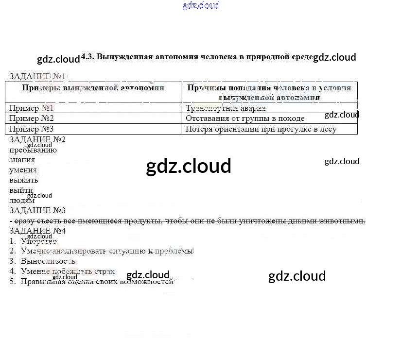 Ответ на задание 4.3 Рабочая тетрадь ОБЖ за 6 (шестой) класс Смирнов, Хренников 2016 ФГОС онлайн и без номера телефона.