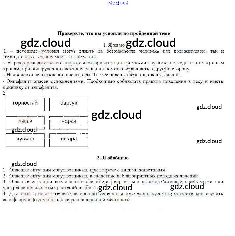 Ответ на задание Проверьте свои знания Рабочая тетрадь ОБЖ за 6 (шестой) класс Смирнов, Хренников 2016 ФГОС онлайн и без номера телефона.