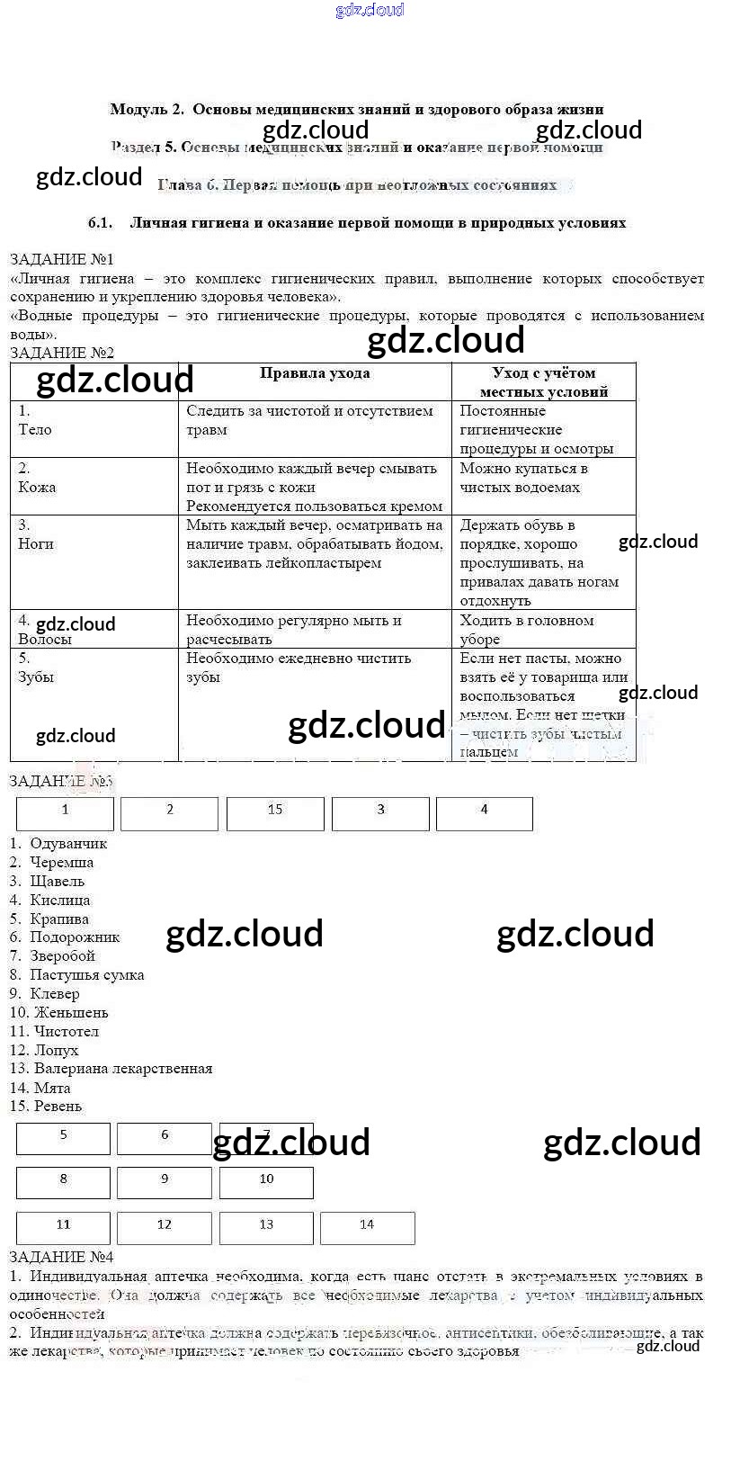 Ответы к главе 6 по ОБЖ 6 класс Рабочая тетрадь Смирнов Просвещение