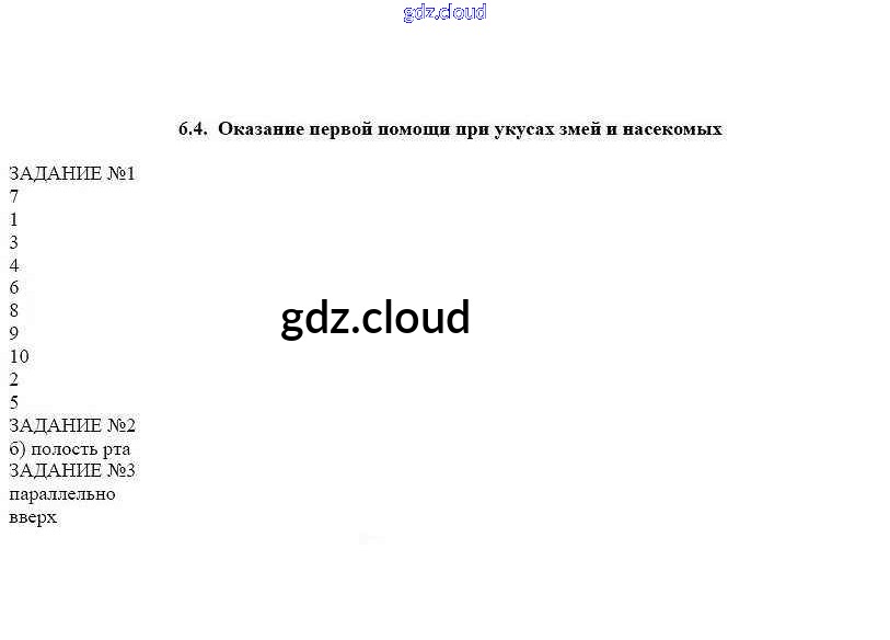 Ответ на задание 6.4 Рабочая тетрадь ОБЖ за 6 (шестой) класс Смирнов, Хренников 2016 ФГОС онлайн и без номера телефона.