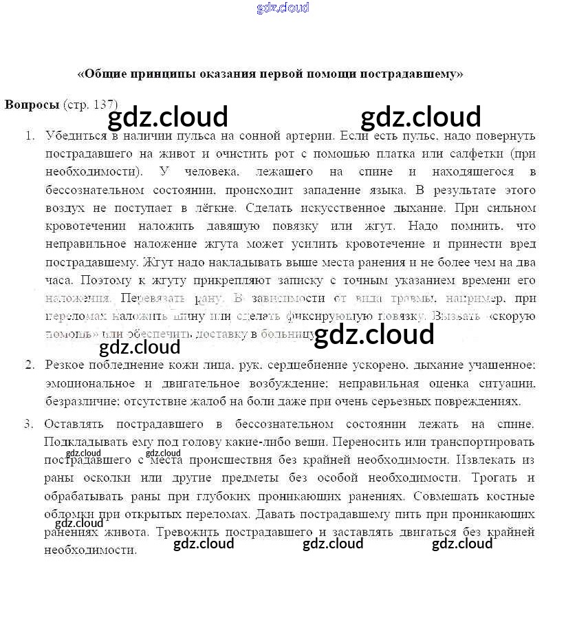 Ответ на задание 137 Учебник ОБЖ за 6 (шестой) класс Фролов, Шолох, Юрьева, Мишин 2017 ФГОС онлайн и без номера телефона.