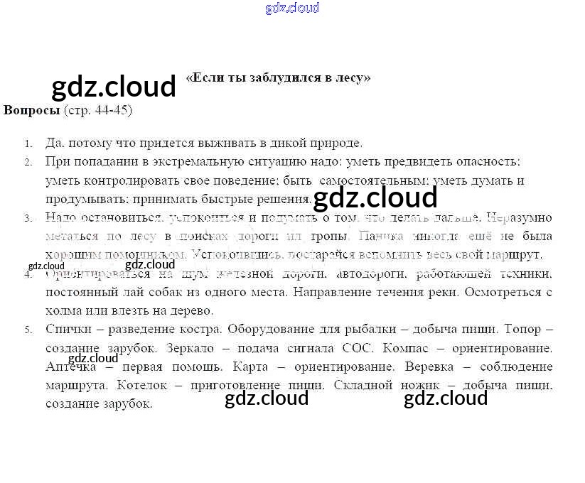 Ответ на задание 44-45 Учебник ОБЖ за 6 (шестой) класс Фролов, Шолох, Юрьева, Мишин 2017 ФГОС онлайн и без номера телефона.