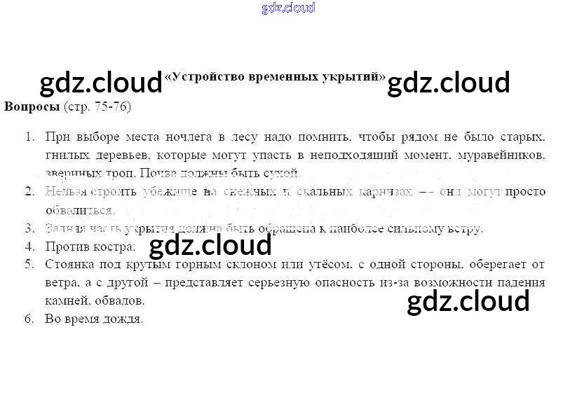 Ответ на задание 75-76 Учебник ОБЖ за 6 (шестой) класс Фролов, Шолох, Юрьева, Мишин 2017 ФГОС онлайн и без номера телефона.