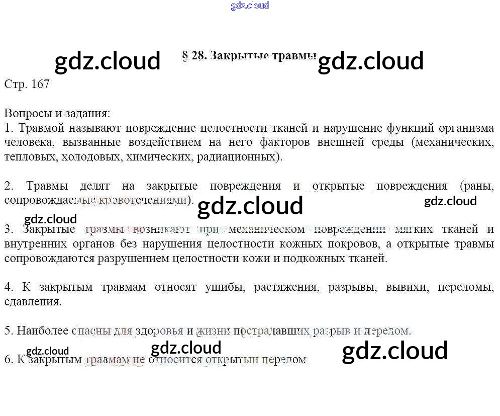Ответ на задание 167 Учебник ОБЖ за 6 (шестой) класс Маслов, Марков, Латчук, Кузнецов Вертикаль 2018 ФГОС онлайн и без номера телефона.