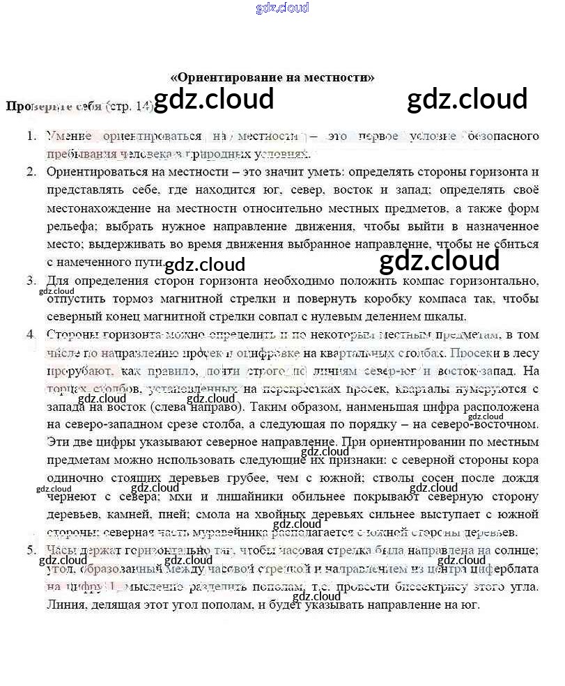 Ответ на задание 14 Учебник ОБЖ за 6 (шестой) класс Смирнов, Хренников 2018 ФГОС онлайн и без номера телефона.