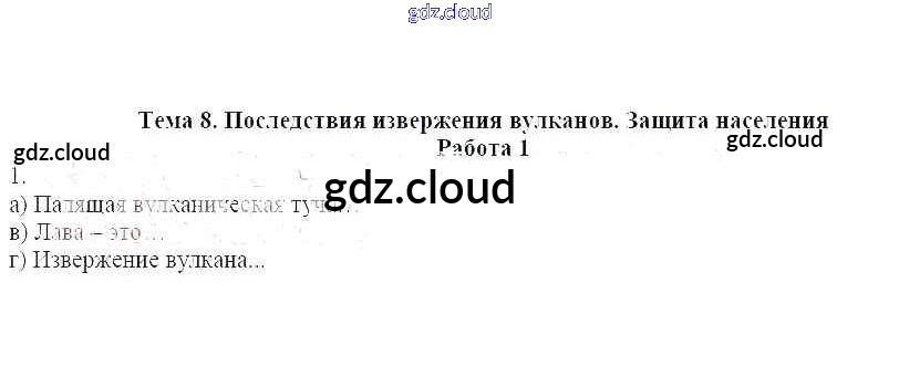 Работа 1 Ответы к теме: 8. Последствия извержения вулканов. Защита населения по ОБЖ 7 класс Рабочая тетрадь Демидов    Лицей