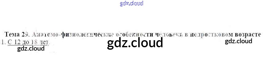 Ответы к теме: 29. Анатомо-физиологические особенности человека в подростковом возрасте по ОБЖ 7 класс Рабочая тетрадь Демидов Лицей