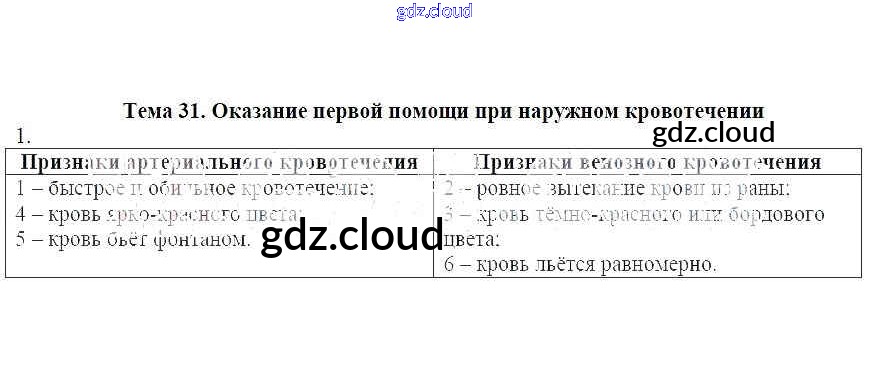 Ответы к теме: 31. Оказание первой помощи при наружном кровотечении по ОБЖ 7 класс Рабочая тетрадь Демидов Лицей