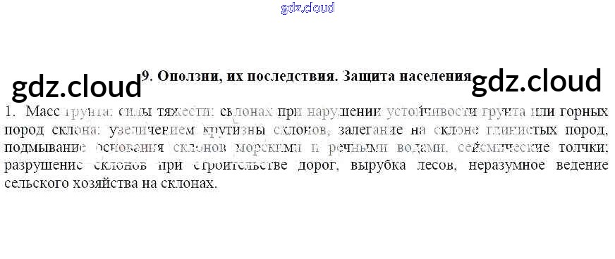 Ответы к теме: 9. Оползни, их последствия. Защита населения по ОБЖ 7 класс Рабочая тетрадь Егорова Лицей