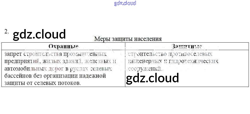Ответы к теме: 18. Защита населения от последствий селевых потоков по ОБЖ 7 класс Рабочая тетрадь Егорова Лицей