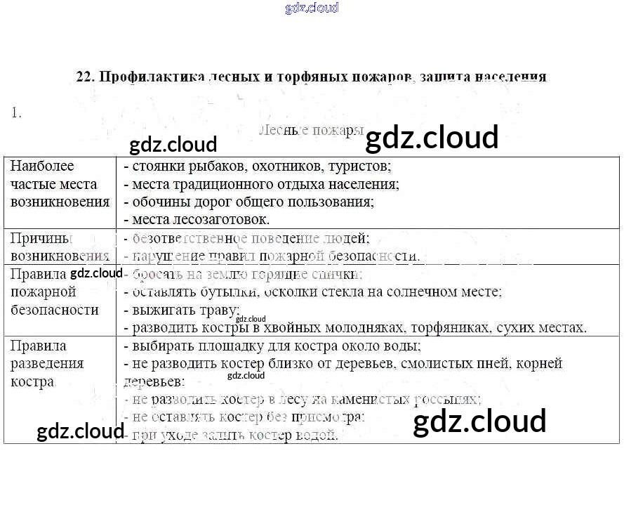 Ответы к теме: 22. Профилактика лесных и торфяных пожаров, защита населения по ОБЖ 7 класс Рабочая тетрадь Егорова Лицей