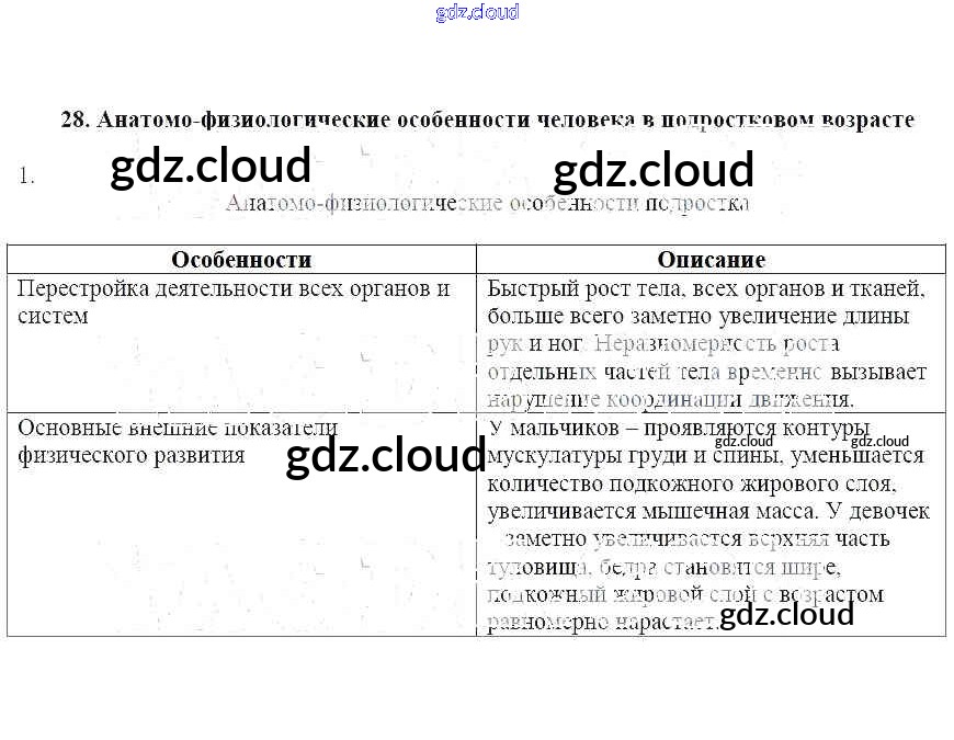 Ответы к теме: 28. Анатомо-физиологические особенности человека в подростковом возрасте по ОБЖ 7 класс Рабочая тетрадь Егорова Лицей