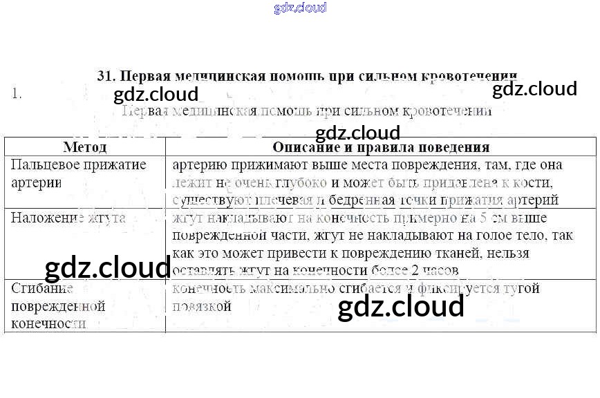 Ответы к теме: 31. Первая медицинская помощь при сильном кровотечении по ОБЖ 7 класс Рабочая тетрадь Егорова Лицей