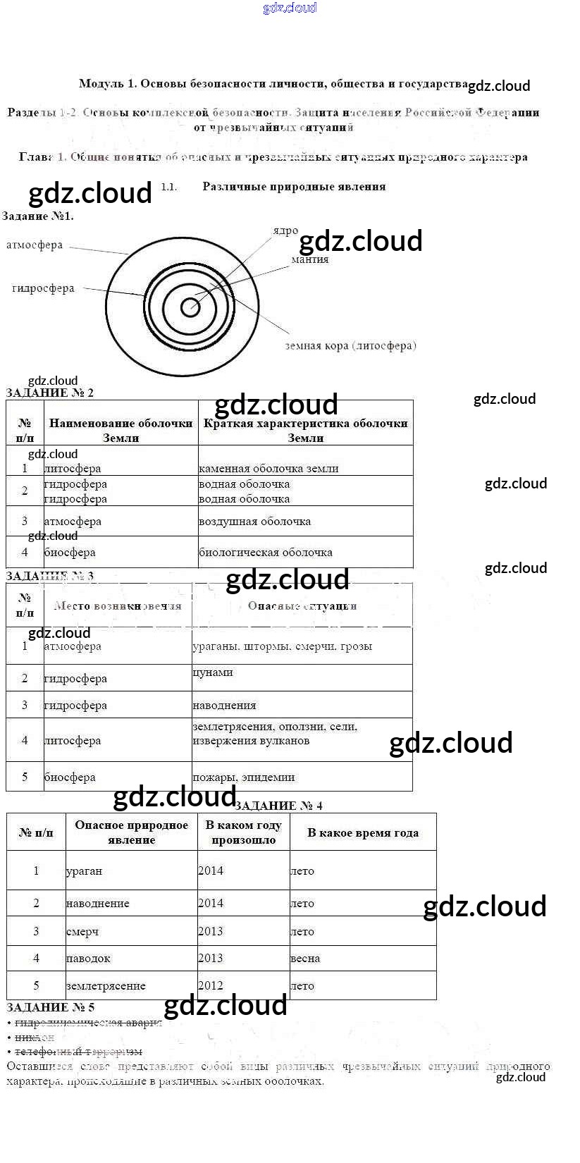 Ответ на задание 1.1 Рабочая тетрадь ОБЖ за 7 (седьмой) класс Смирнов, Хренников, Маслов 2018 онлайн и без номера телефона.
