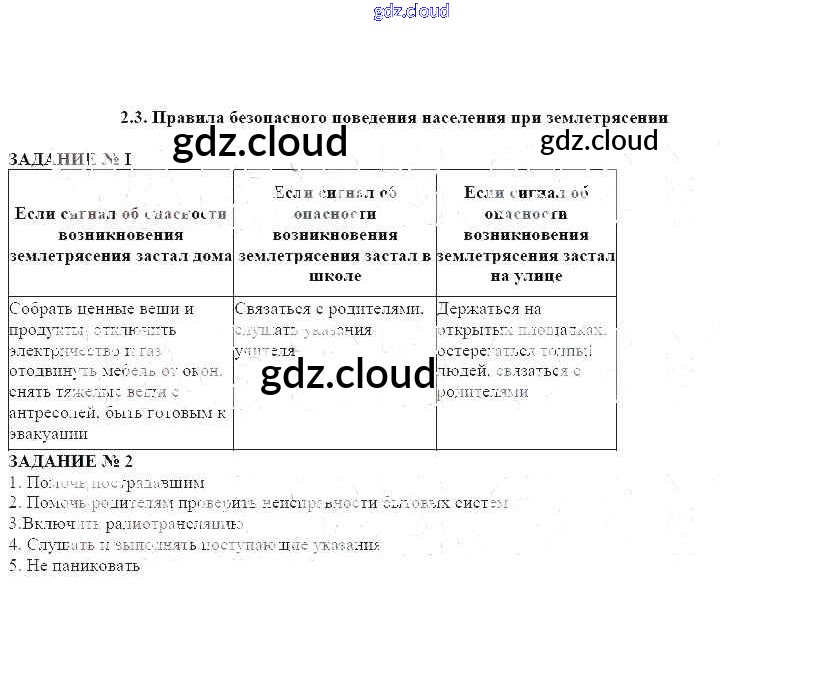 Ответ на задание 2.3 Рабочая тетрадь ОБЖ за 7 (седьмой) класс Смирнов, Хренников, Маслов 2018 онлайн и без номера телефона.