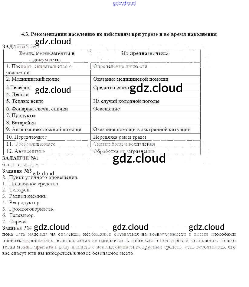 Ответ на задание 4.3 Рабочая тетрадь ОБЖ за 7 (седьмой) класс Смирнов, Хренников, Маслов 2018 онлайн и без номера телефона.