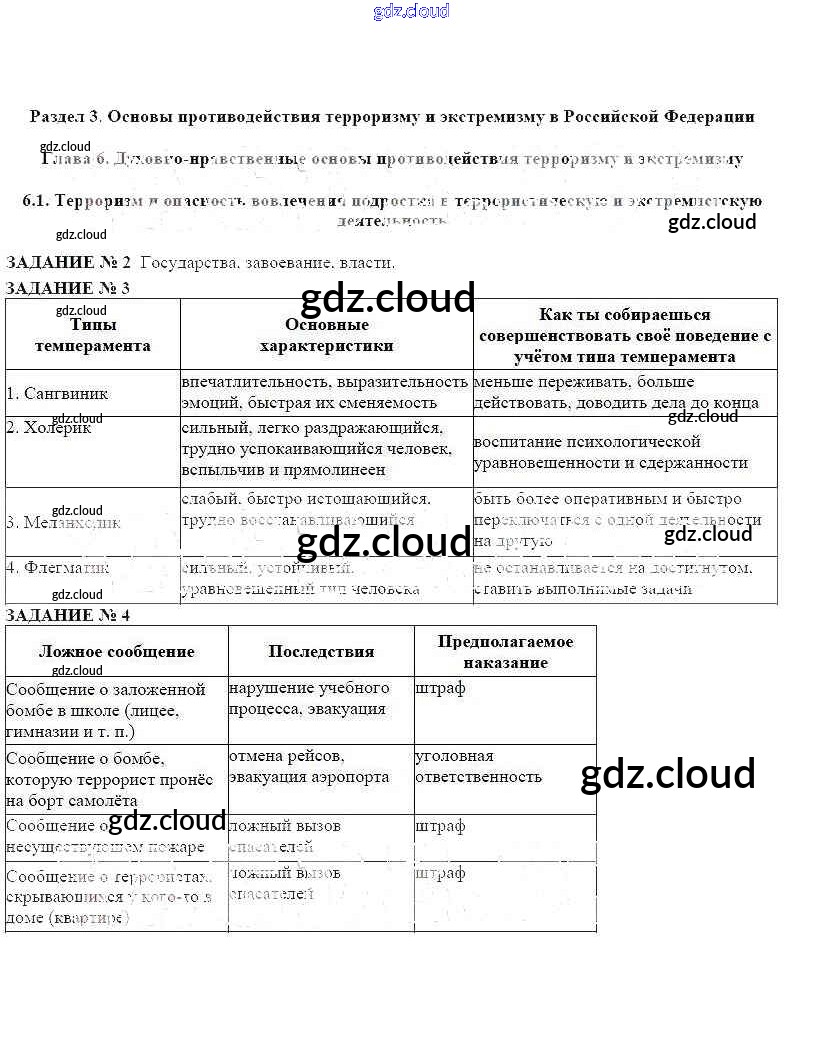 Ответ на задание 6.1 Рабочая тетрадь ОБЖ за 7 (седьмой) класс Смирнов, Хренников, Маслов 2018 онлайн и без номера телефона.