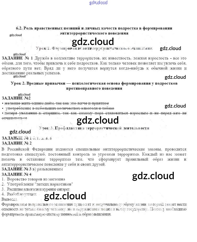 Ответы к главе 6 по ОБЖ 7 класс Рабочая тетрадь Смирнов Просвещение