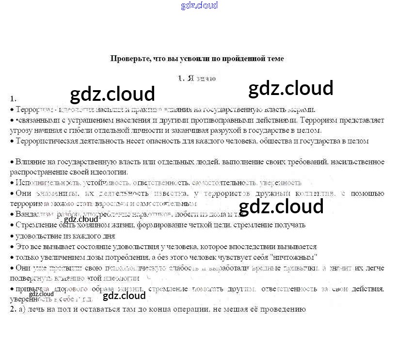 Ответ на задание Проверьте свои знания Рабочая тетрадь ОБЖ  за 7 (седьмой) класс Смирнов, Хренников, Маслов   2018