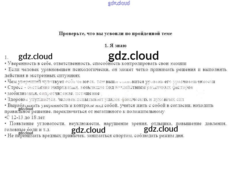 Ответ на задание Проверьте свои знания Рабочая тетрадь ОБЖ  за 7 (седьмой) класс Смирнов, Хренников, Маслов   2018