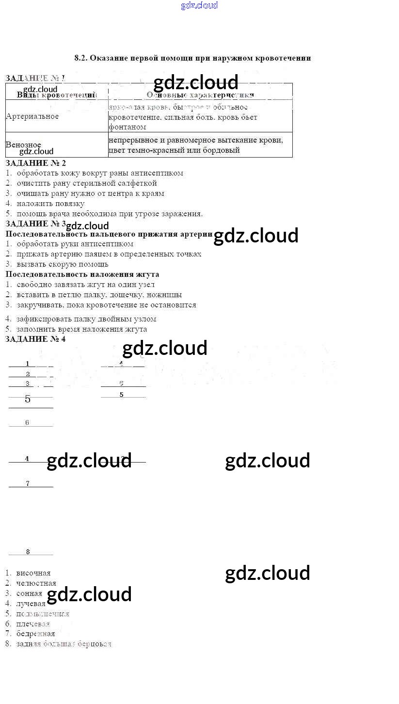Ответы к главе 8 по ОБЖ 7 класс Рабочая тетрадь Смирнов Просвещение