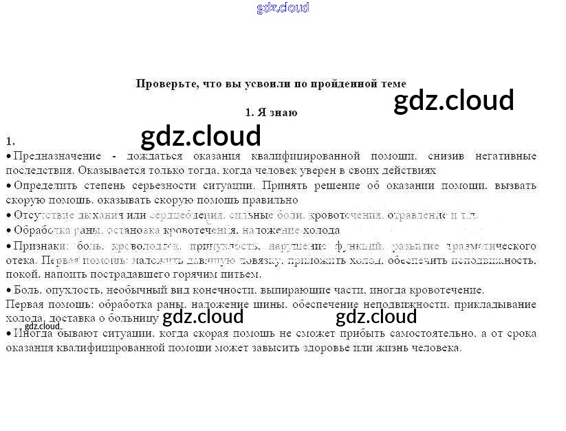 Ответ на задание Проверьте свои знания Рабочая тетрадь ОБЖ за 7 (седьмой) класс Смирнов, Хренников, Маслов 2018
