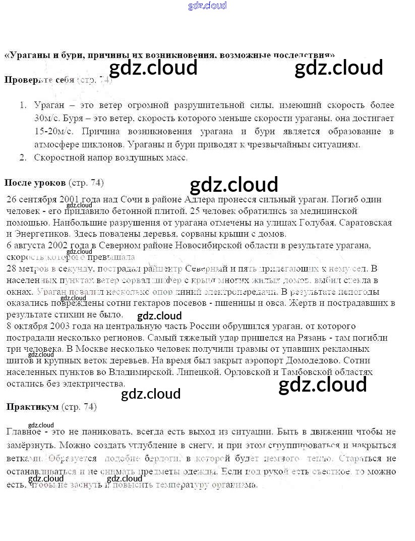 Ответ на задание 74 Учебник ОБЖ за 7 (седьмой) класс Смирнов, Хренников 2018 ФГОС онлайн и без номера телефона.