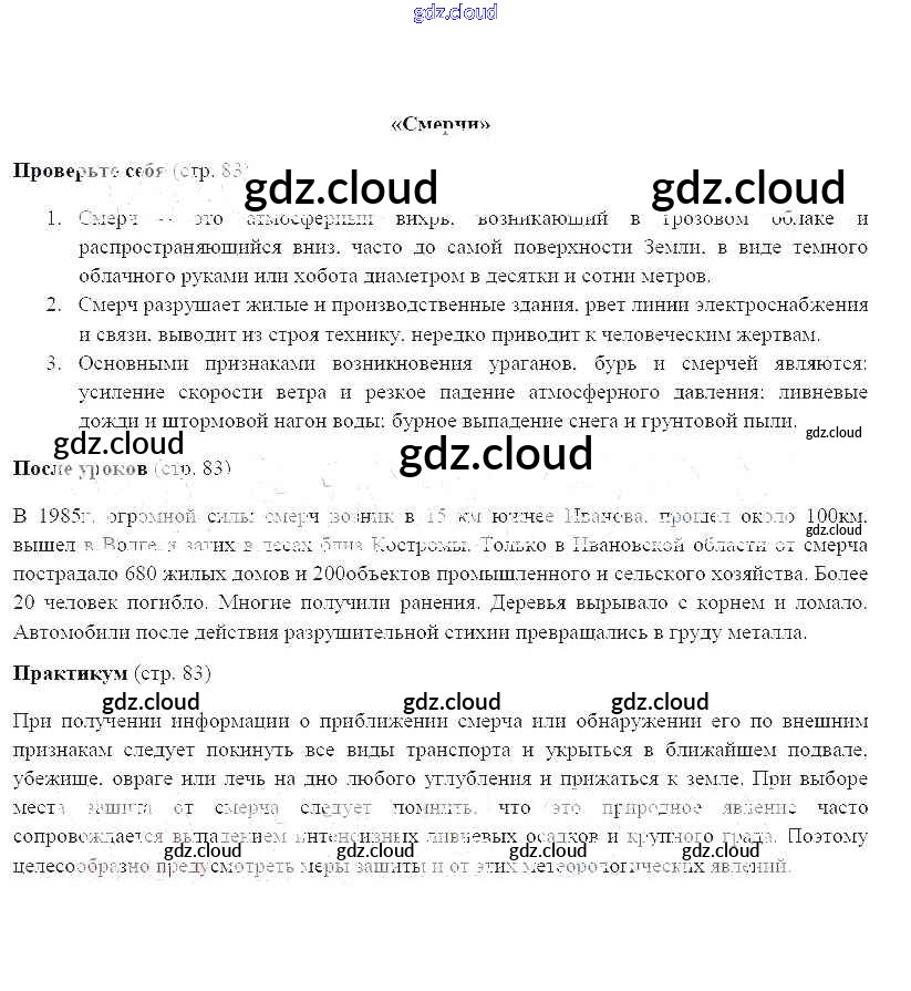 Ответ на задание 83 Учебник ОБЖ за 7 (седьмой) класс Смирнов, Хренников 2018 ФГОС онлайн и без номера телефона.