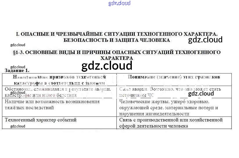 §1-3 Ответы к теме: 1. Основные виды и причины опасных ситуаций техногенного характера по ОБЖ 8 класс Рабочая тетрадь Подолян Дрофа
