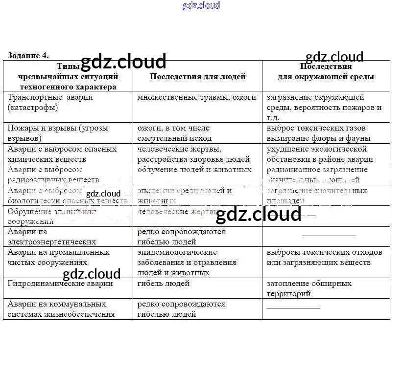 Ответ на задание 4 Рабочая тетрадь ОБЖ за 8 (восьмой) класс Подолян 2017
