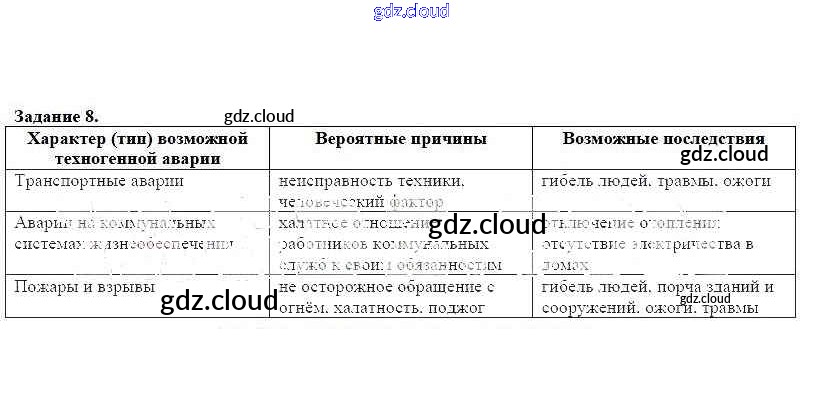 §1-3 Ответы к теме: 1. Основные виды и причины опасных ситуаций техногенного характера по ОБЖ 8 класс Рабочая тетрадь Подолян Дрофа