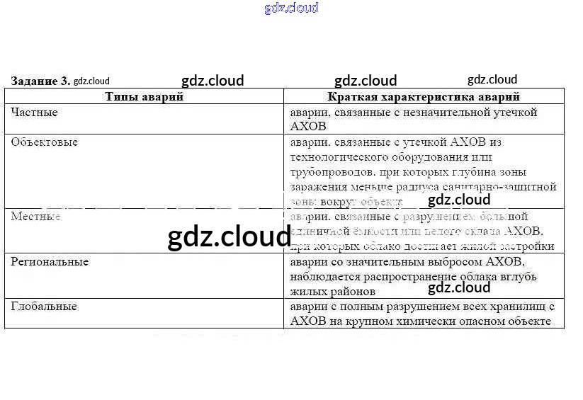 §11 Ответы к теме: 3. Аварии с выбросом опасных химических веществ по ОБЖ 8 класс Рабочая тетрадь Подолян Дрофа