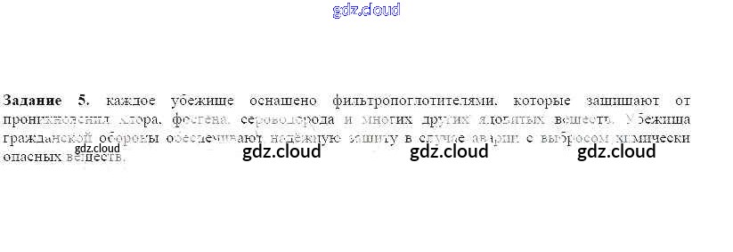 Ответ на задание 5 Рабочая тетрадь ОБЖ за 8 (восьмой) класс Подолян 2017 ФГОС онлайн и без номера телефона.