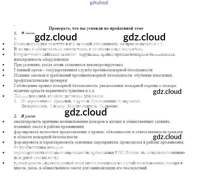 Ответ на задание Проверьте свои знания Рабочая тетрадь ОБЖ за 8 (восьмой) класс Смирнов, Хренников, Маслов 2013