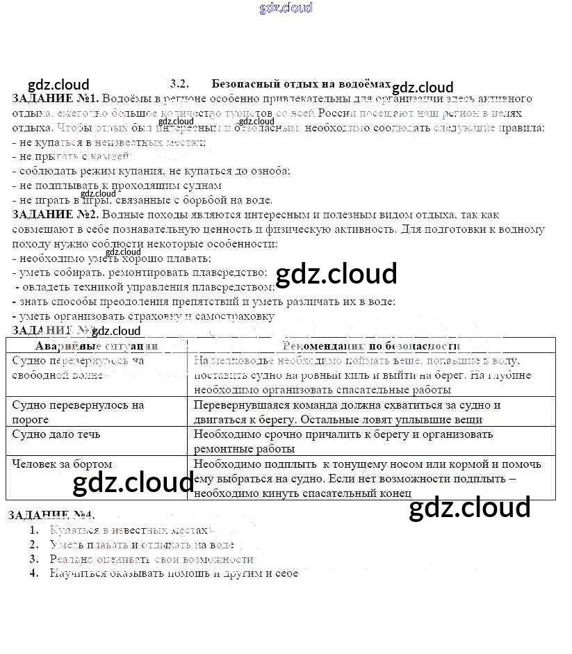 Ответ на задание 3.2 Рабочая тетрадь ОБЖ за 8 (восьмой) класс Смирнов, Хренников, Маслов 2013 ФГОС онлайн и без номера телефона.