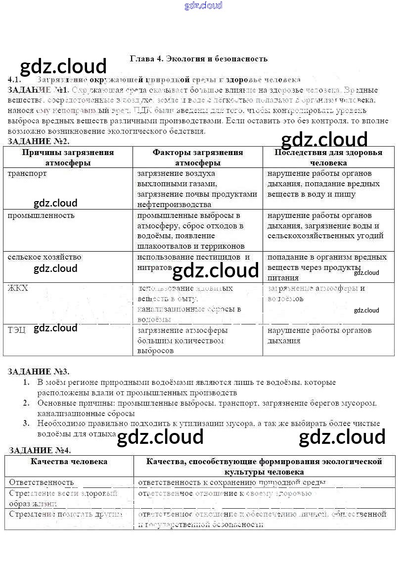 Ответ на задание 4.1 Рабочая тетрадь ОБЖ за 8 (восьмой) класс Смирнов, Хренников, Маслов 2013 ФГОС онлайн и без номера телефона.