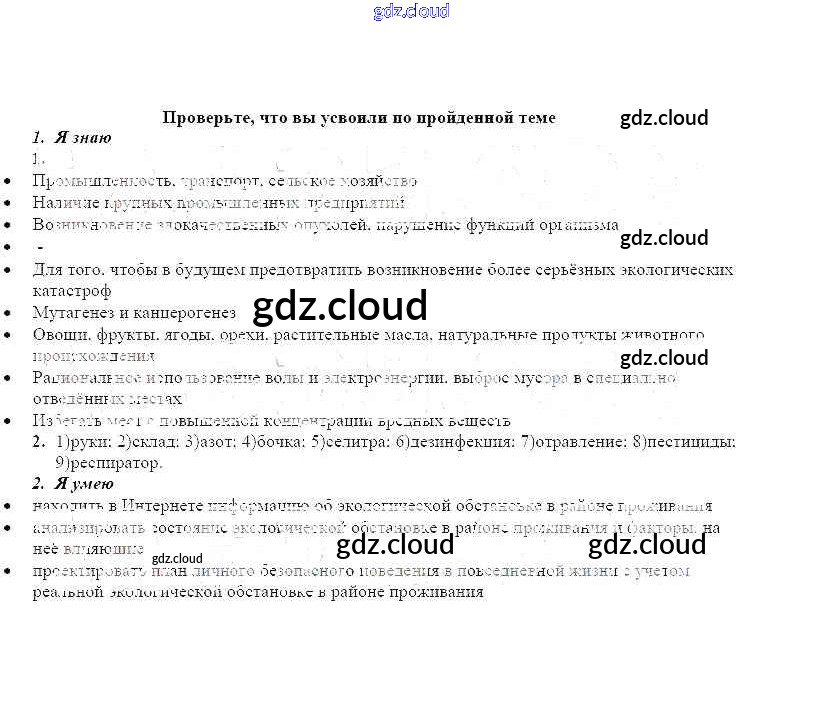 Ответ на задание Проверьте свои знания Рабочая тетрадь ОБЖ за 8 (восьмой) класс Смирнов, Хренников, Маслов 2013