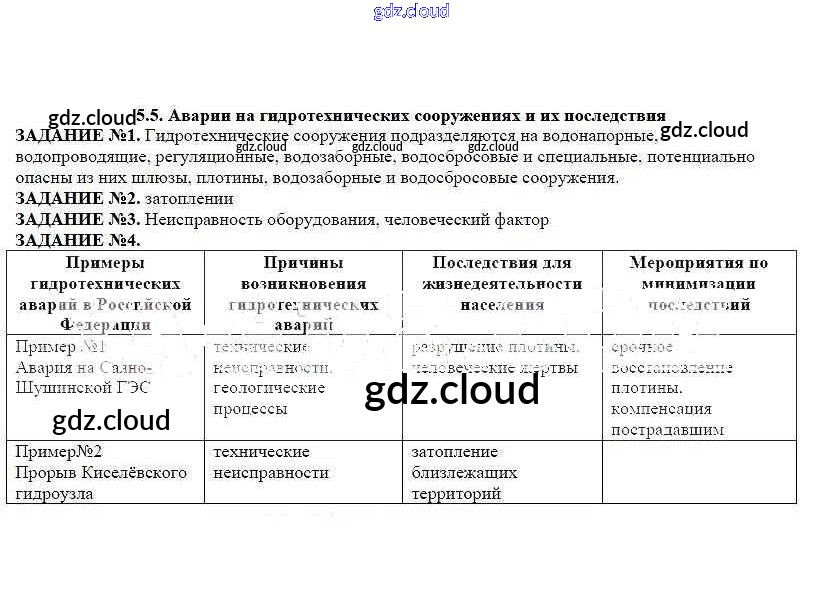 Ответ на задание 5.5 Рабочая тетрадь ОБЖ за 8 (восьмой) класс Смирнов, Хренников, Маслов 2013 ФГОС онлайн и без номера телефона.