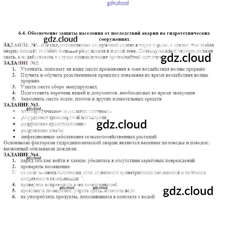 Ответ на задание 6.4 Рабочая тетрадь ОБЖ за 8 (восьмой) класс Смирнов, Хренников, Маслов 2013 ФГОС онлайн и без номера телефона.