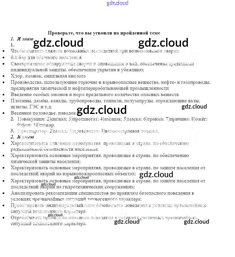 Ответ на задание Проверьте свои знания Рабочая тетрадь ОБЖ за 8 (восьмой) класс Смирнов, Хренников, Маслов 2013