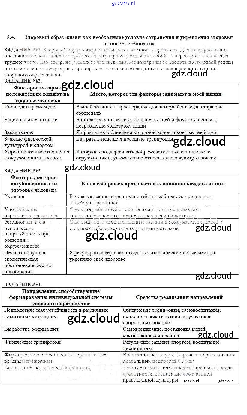 Ответ на задание 8.4 Рабочая тетрадь ОБЖ за 8 (восьмой) класс Смирнов, Хренников, Маслов 2013 ФГОС онлайн и без номера телефона.
