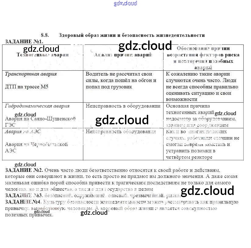 Ответ на задание 8.8 Рабочая тетрадь ОБЖ за 8 (восьмой) класс Смирнов, Хренников, Маслов 2013 ФГОС онлайн и без номера телефона.
