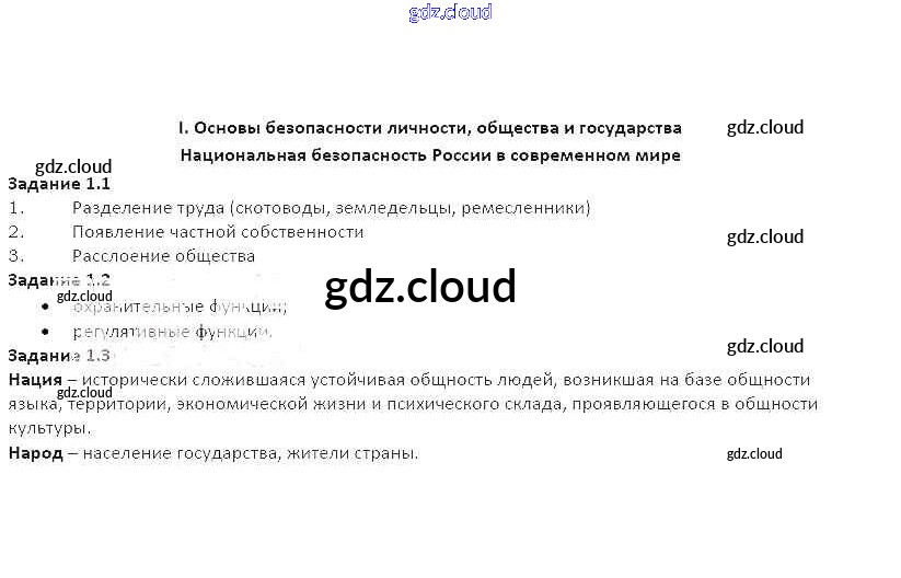 Ответы к главе 1. Национальная безопасность России в современном мире по ОБЖ 9 класс Рабочая тетрадь Подолян Дрофа